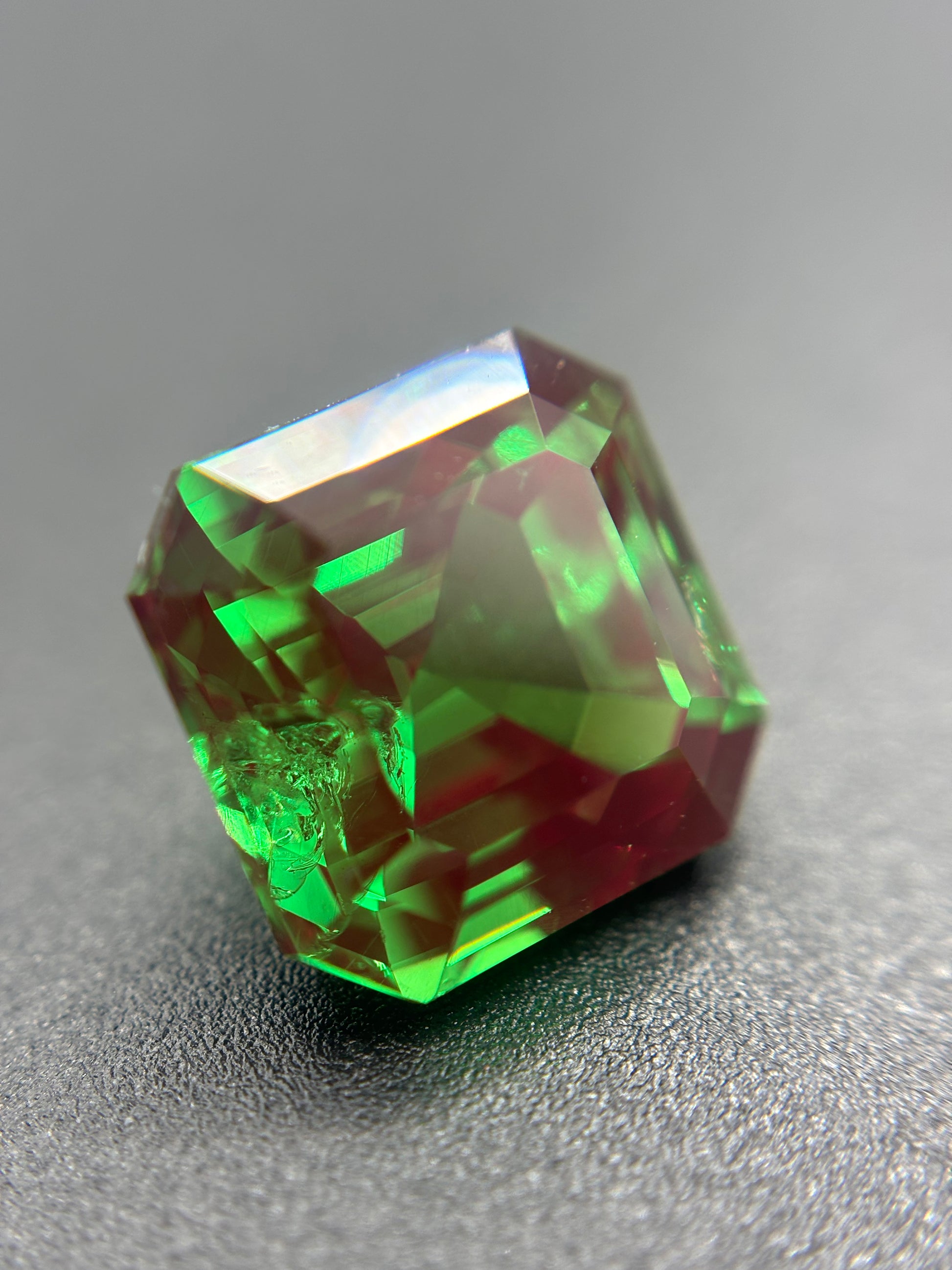 The raw material for this gemstone comes from CTH YAG (Yttrium Aluminum Garnet) laser crystals, and such materials are custom-grown using the Czochralski method. They are manufactured for industrial purposes (medical, military) or laboratory scientific purposes. Parameters such as doping concentration, crystal orientation, laser wavelength, etc., vary.