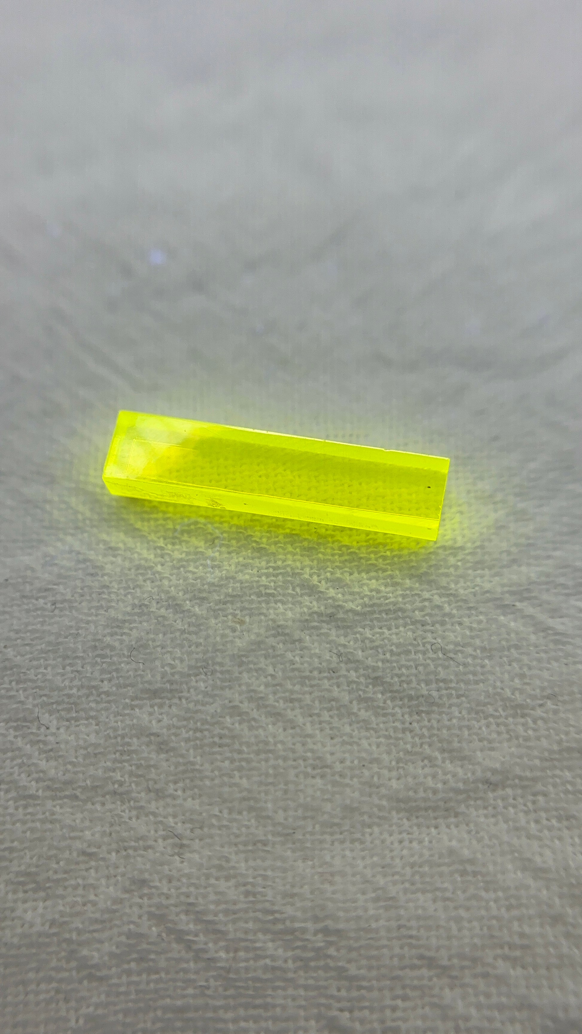 This stone was still producing pixels and lenses yesterday for gamma-ray detection in a university laboratory, and we took them out of the production line today and selected small pieces that are suitable for gemstones.This substance is very expensive in industrial applications, with the finished product approaching the price of gold. It is usually cut into thin slices of only 0.1mm or made into grid-shaped inspection products.